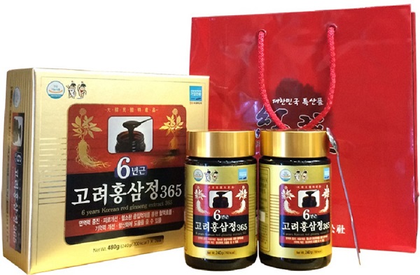 Thành phần: Cao Hồng sâm 365 Hàn Quốc được tinh chế từ 100% từ nhân sâm 6 năm tuổi. Sản phẩm được tạo thành sau khi chiết xuất những tinh túy của củ Hồng Sâm. Những tinh chất của củ nhân sâm sau những quá trình chế biến công phu sẽ được cô đặc lại thành một loại keo gọi là Cao Hồng Sâm.