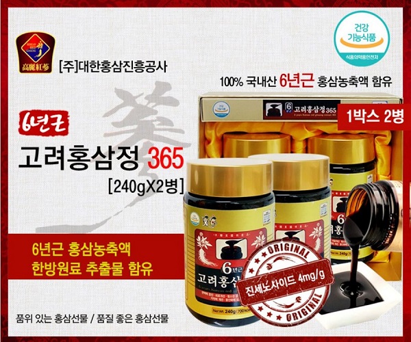 Theo nhiều nghiên cứu: Hồng sâm Hàn Quốc hiện có 32 loại saponin tốt cho sức khỏe, so với 15 loại saponin trong sâm Mỹ và 8 loại saponin trong sâm Nhật. Cao hồng sâm 365 Hàn Quốc 6 năm tuổi là sản phẩm được tạo thành sau khi chiết xuất những tinh túy của củ hồng sâm. Những tinh chất của củ nhân sâm sau những quá trình chế biến công phu sẽ được cô đặc lại thành một loại keo có màu cánh gián vô cùng bổ dưỡng và dễ hấp thu cho cơ thể con người, được gọi là Cao Hồng sâm.