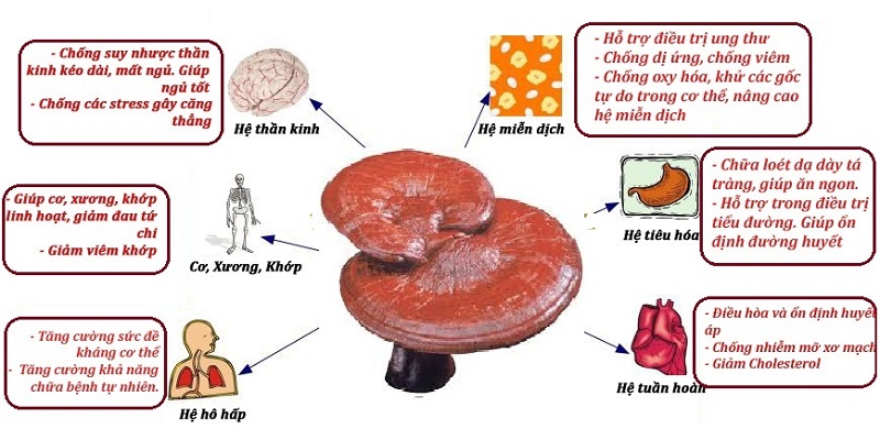 ➢ Nấm Linh Chi có tác dụng thải độc, sử dụng Nấm Linh Chi thường xuyên giúp hỗ trợ hệ bài tiết làm việc tốt nhất, các chất béo và chất độc hại được loại bỏ ra ngoài cơ thể, mang đến cho bạn một cơ thể khỏe mạnh, vóc dáng thon gọn.