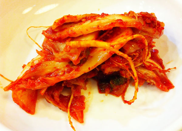 Vị cay xộc của kim chi trộn ớt kèm với vị ngai ngái ngòn ngọt của nhân sâm tươi thực sự là một trải nghiệm thú vị. Cũng như nhân sâm, kim chi từ lâu đời đã gắn bó với đời sống ẩm thực của người Hàn Quốc, hiếm có bữa ăn nào của các gia đình lại có thể vắng bóng một đĩa kim chi đỏ rực màu ớt. Cái cay nóng của kim chi sẽ được khéo léo "chế ngự" bởi nhân sâm vốn dĩ tính hàn tạo thành món ăn khá ngon miệng mà không ngấy.